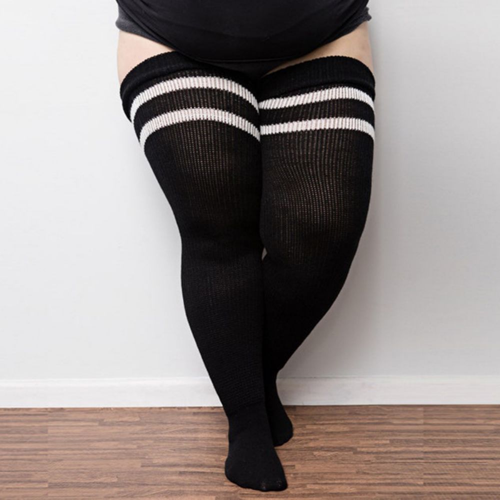 Frauen Winter Beinwärmer, große Größe, drei Stangen, gestreift, modisch, lange Röhren Overknee Socken