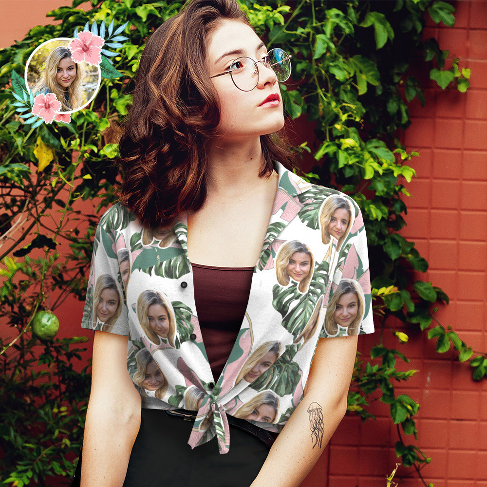 Kundenspezifisches Gesichts-Hawaiianer-Hemd-Rosa-Flamingo-Foto-Hawaiianer-Hemd für Frauen