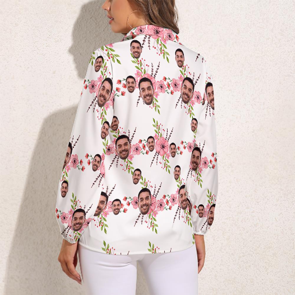 Custom Face Shirts Pink Flowers Lässige lange Ärmel Hawaiihemden für Frauen