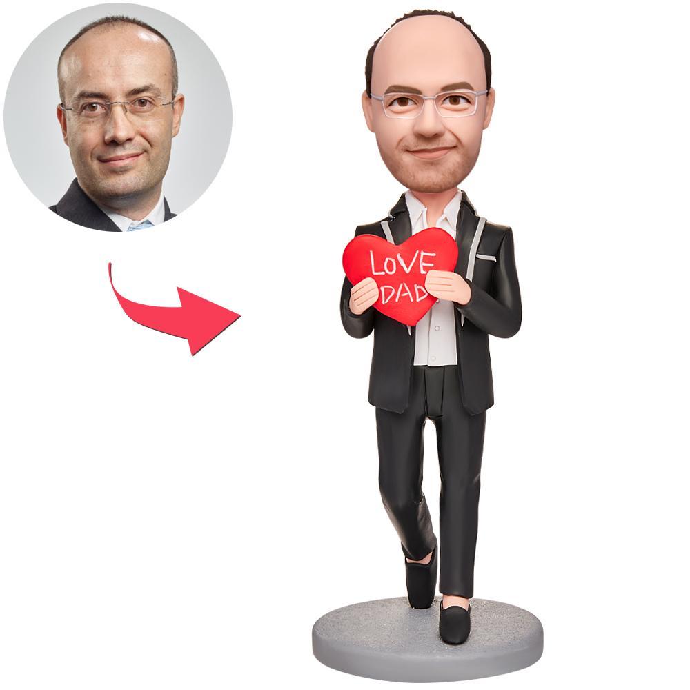 Father's Day Gift Dad Holding Red Heart Custom Bobblehead with Engraved Text