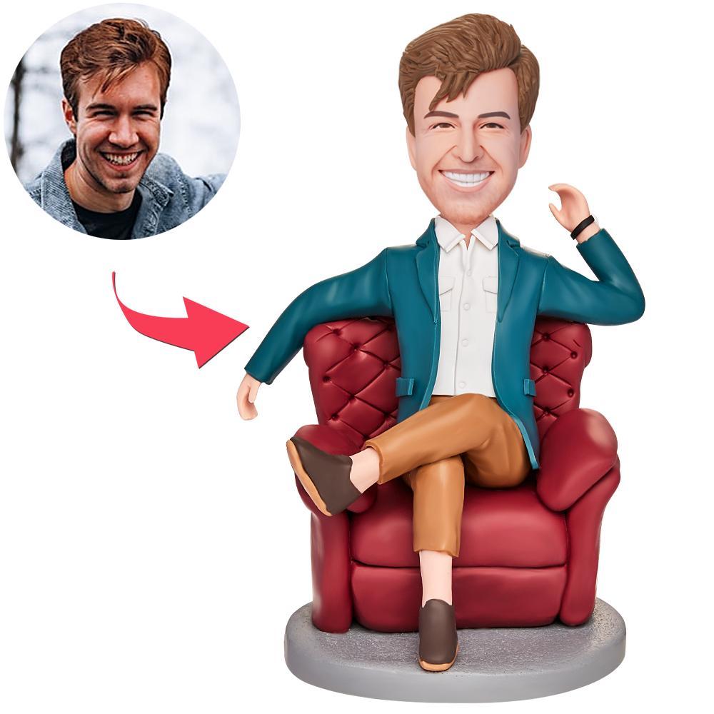 Father's Day Gift Dad Sitting on Sofa Custom Bobblehead with Engraved Text
