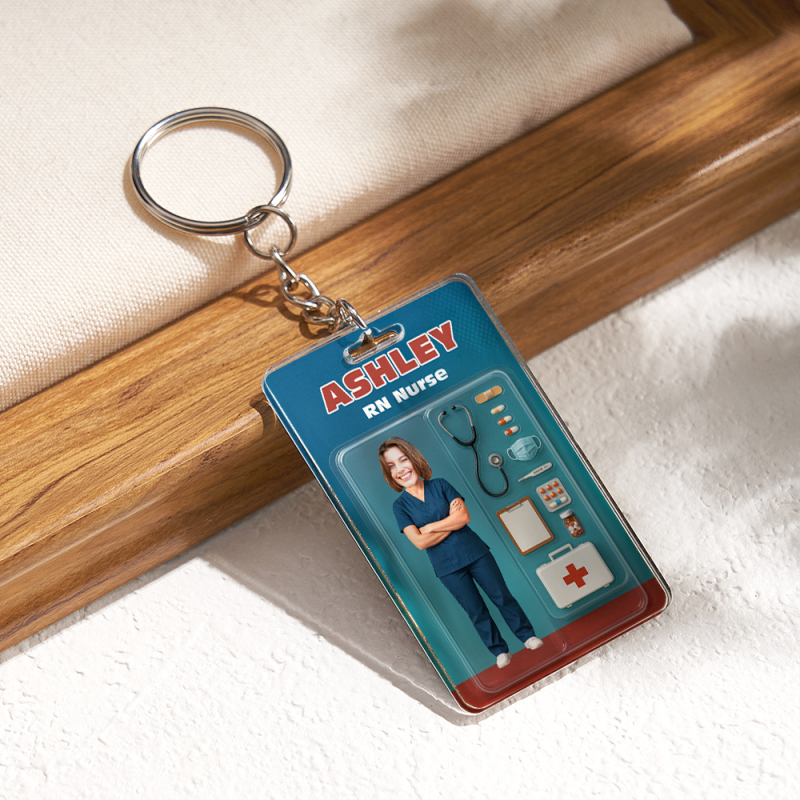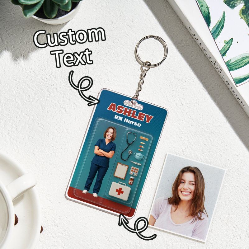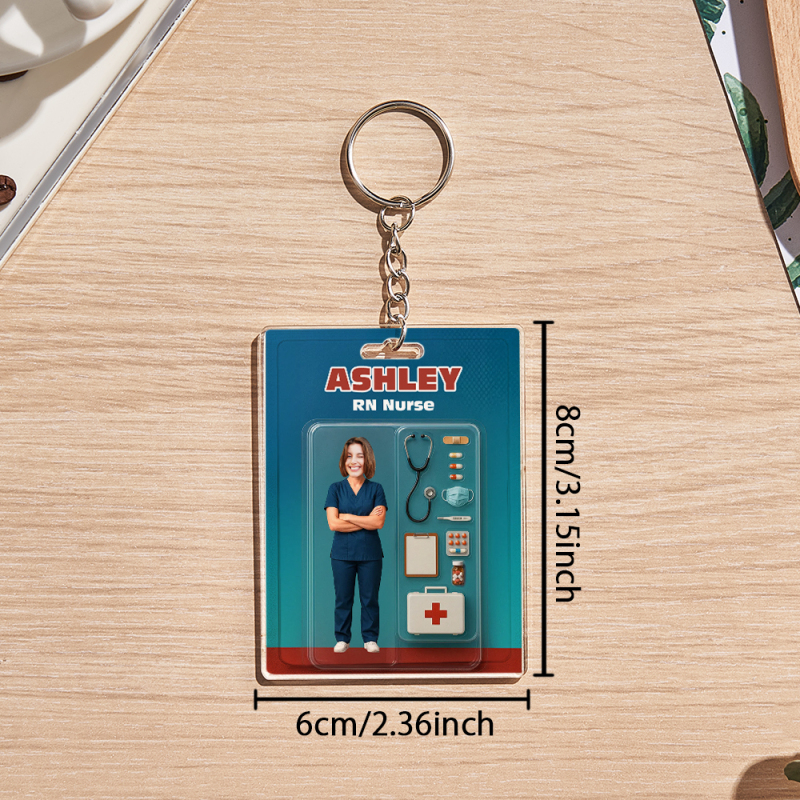 Benutzerdefinierte 2D actionfigur Mit 3D effekt, Anpassbare Kopfverpackung, Spielzeugbox-stil, Kunstgeschenk, Personalisierter Acryl-schlüsselanhänger, Geschenk Zum Krankenschwestertag Für Krankenschwestern