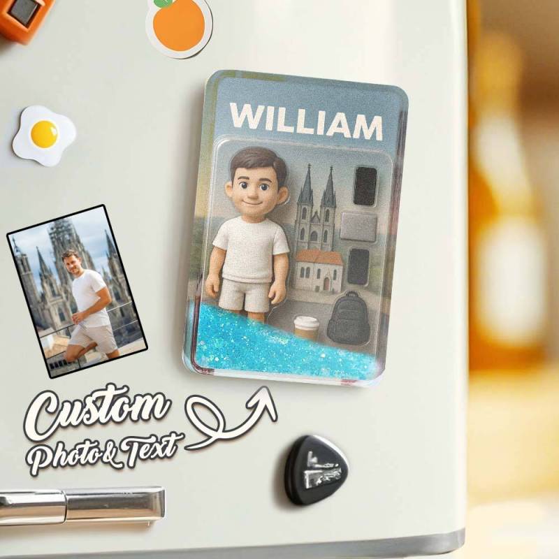 Benutzerdefinierter 3d-effekt Actionfiguren-pack Verpackung Spielzeugbox-stil Kunstgeschenk Personalisierter Quicksand-kühlschrankmagnet Geschenk Für Vater