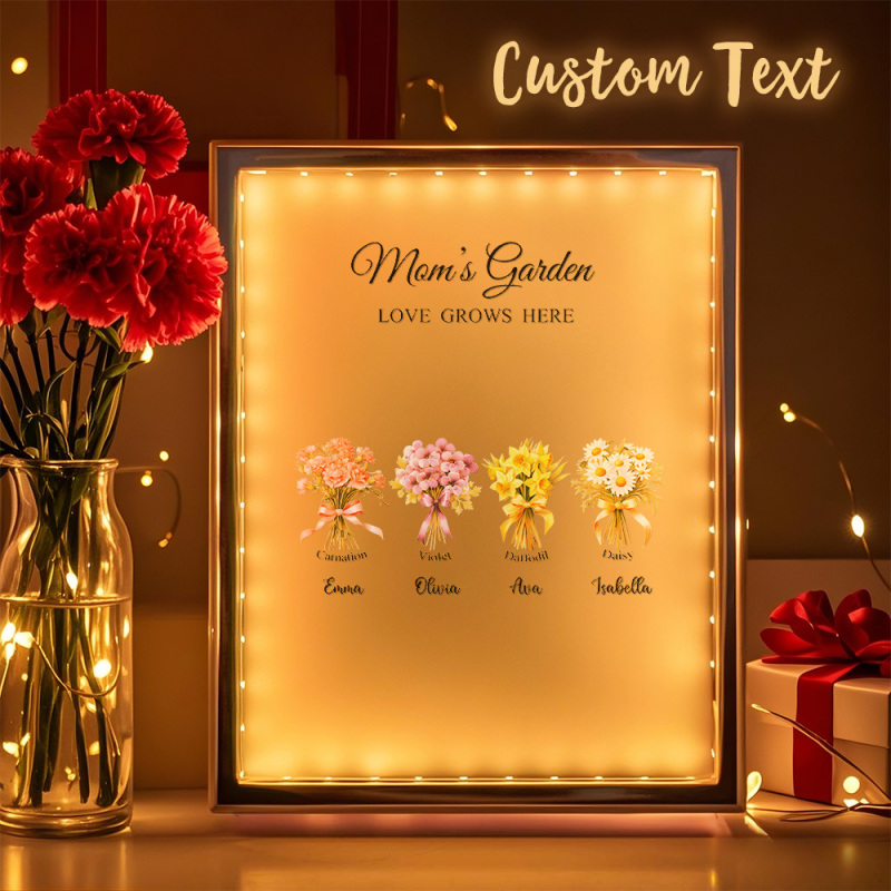 Personalisierte Geburtsblumen-spiegellampe, Personalisiertes Nachtlicht, Geschenk Für Mama