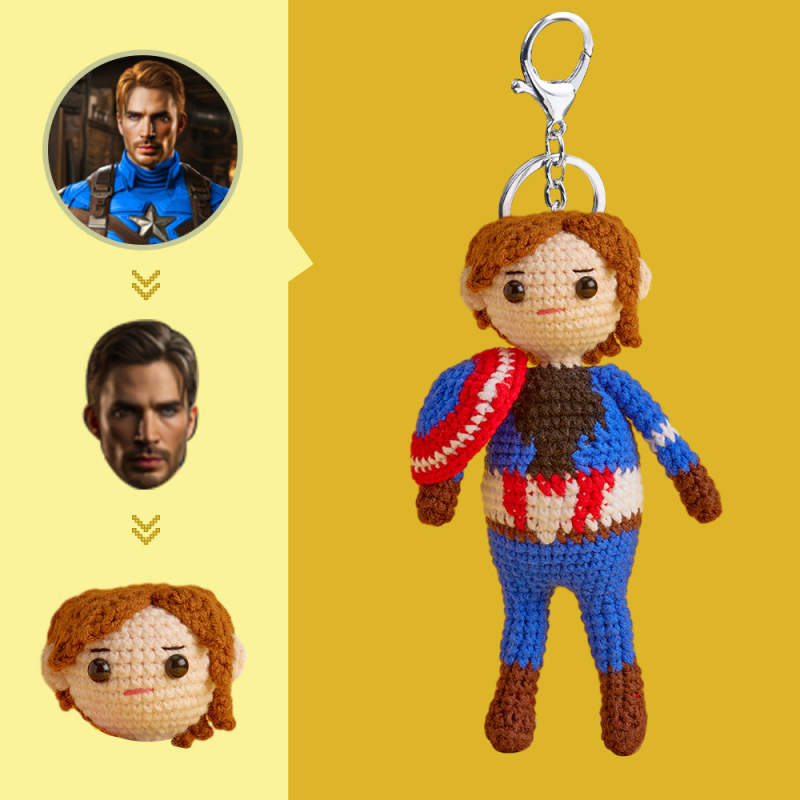 Häkelpuppe Mit Individuellem Gesicht, Personalisierte Geschenke, Handgewebte Minipuppen – Captain America