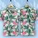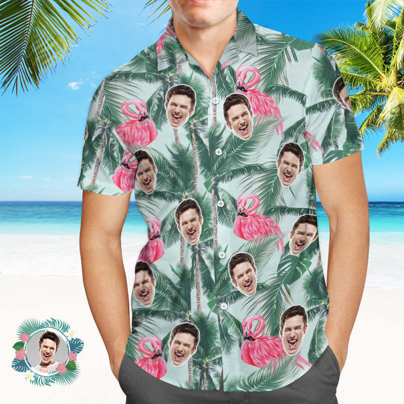 Hawaiihemd Mit Individuellem Gesicht, Grünes Kokosnussbaum-flamingo-hawaiihemd Im Tropischen Stil