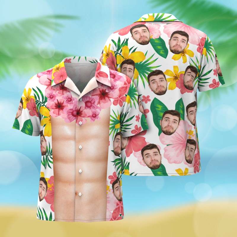 Hawaii-hemd Mit Individuellem Gesicht, Lustige Bauchmuskeln, Aloha, Tropische Blumen, Hawaii-hemd, Personalisiertes Foto, Hawaii-hemden Für Männer