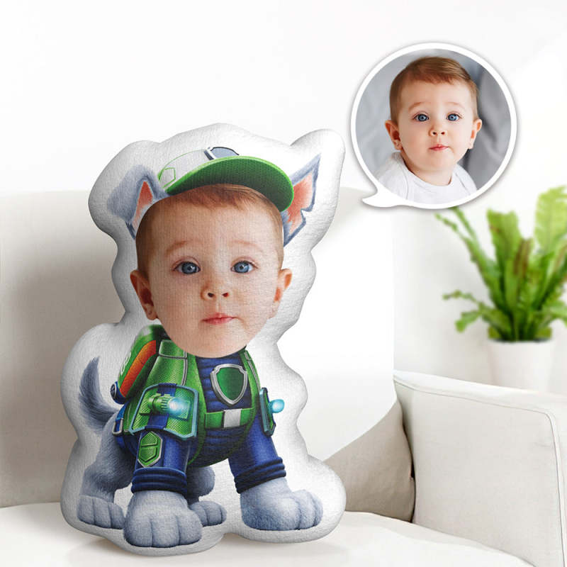 Benutzerdefiniertes Gesichtskissen Minime Green Suit Dog Doll Personalisierte Fotogeschenke Für Kinder