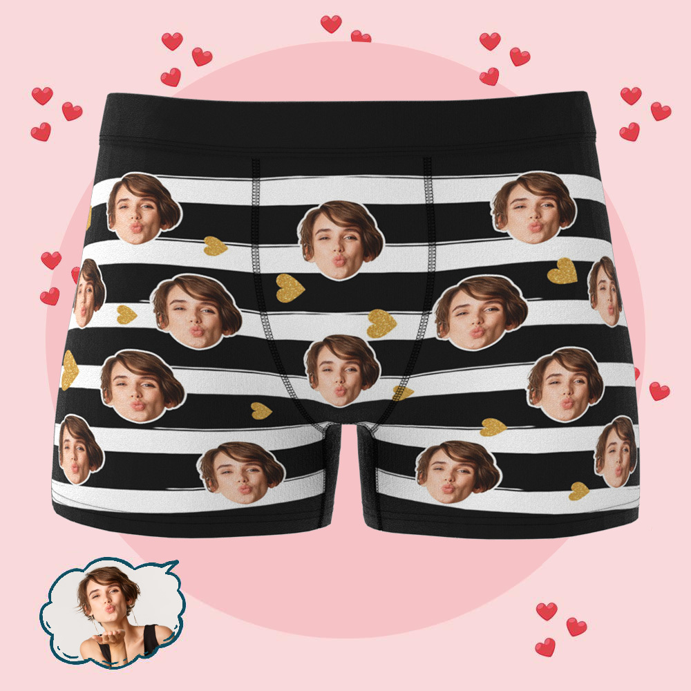 Personalisierte Unterwäsche Mit Gesichtsmotiv, Gestreifte Unterwäsche, Fotounterwäsche Für Den/die Liebste/n