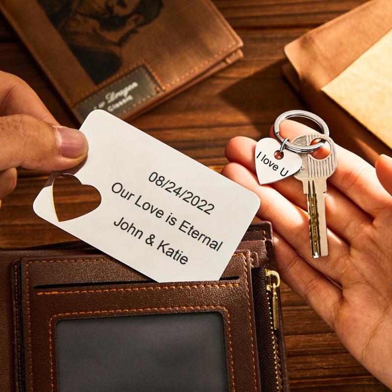 Personalisiertes Foto-graviertes Portemonnaie-karten-schlüsselanhänger-set, Kreative Geschenke Für Paare