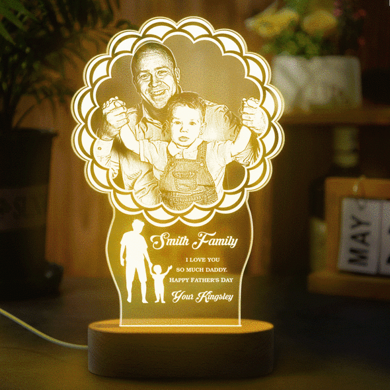 Benutzerdefinierte Foto Vater Kind Lampe Personalisierte Gravur 7 Farben Acryl Nachtlicht Vatertagsgeschenke
