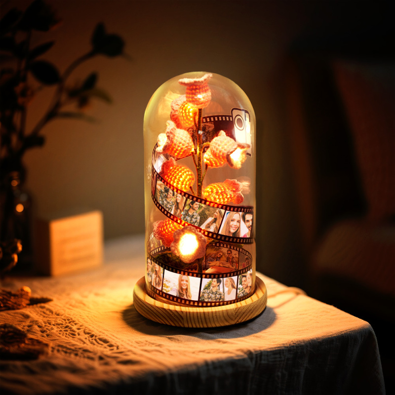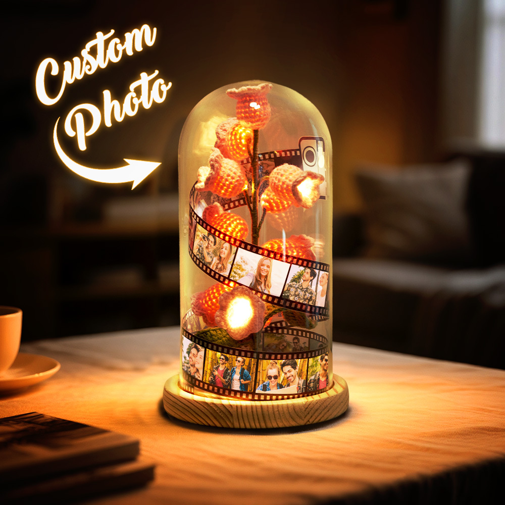 Benutzerdefinierte Fotofilmrolle Mit Gestrickter Blume, Personalisiertes Erinnerungsstraußgeschenk, Individuelle Geschenke Für Den Liebhaber