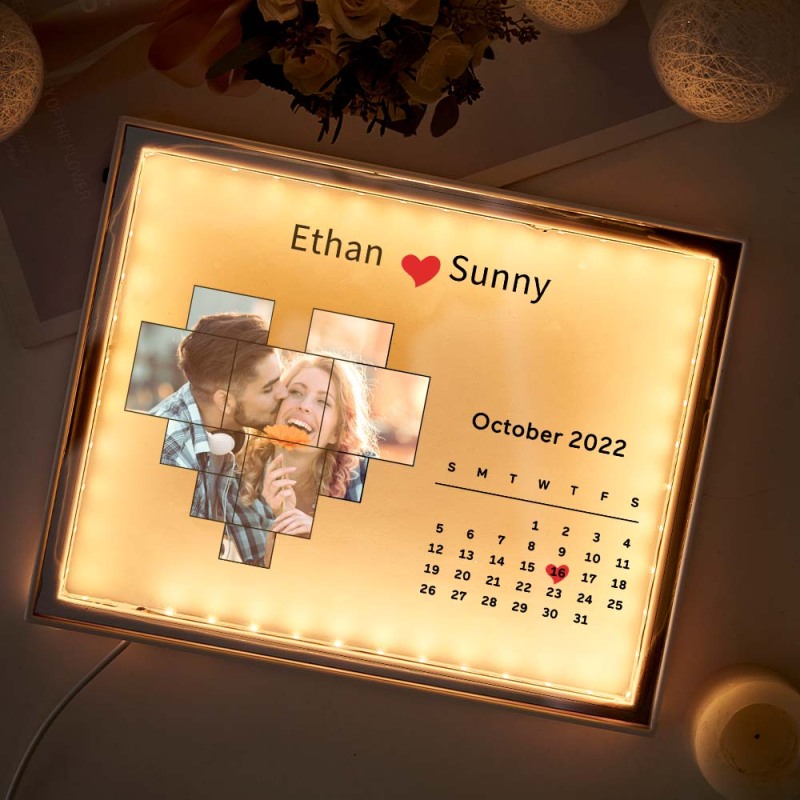 Benutzerdefiniertes Foto-nachtlicht, Personalisierter Kalender, Spiegellampe, Geschenk Für Liebhaber