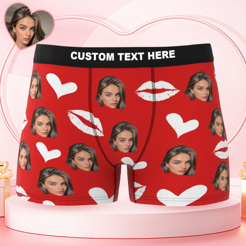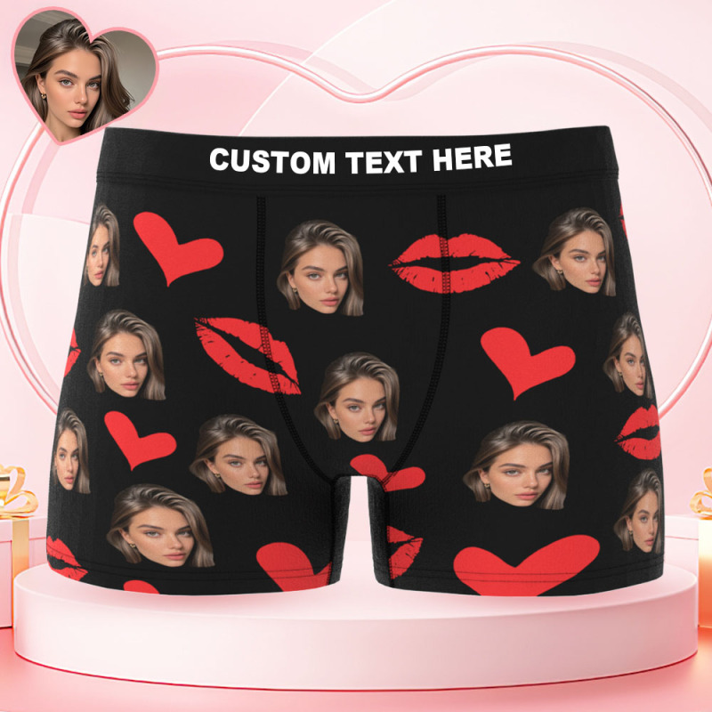 Personalisierte Unterwäsche Mit Foto, Unterhosen Mit Roten Lippen, Personalisierte Höschen Mit Foto