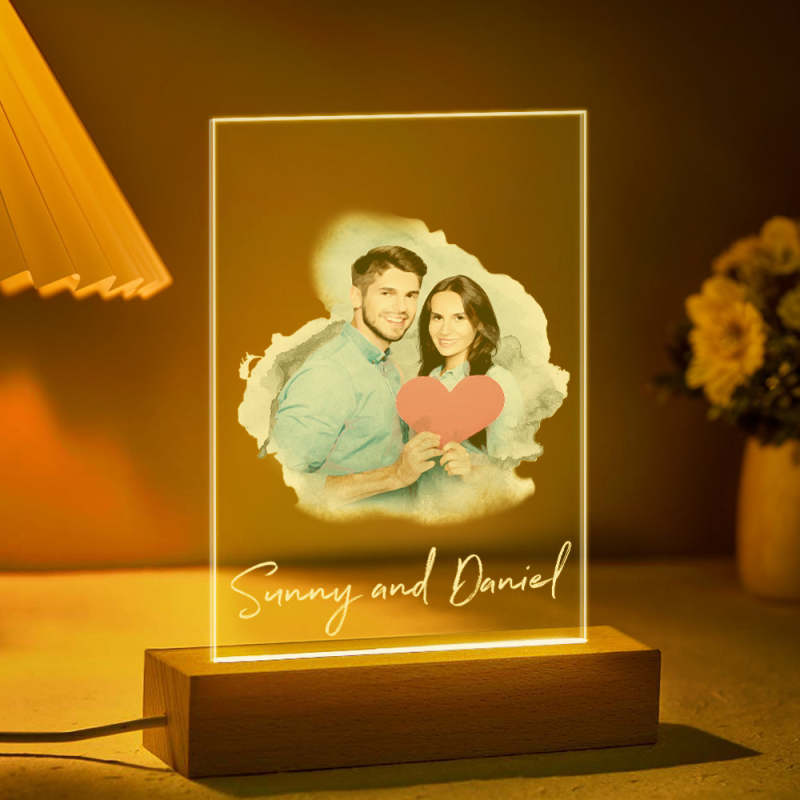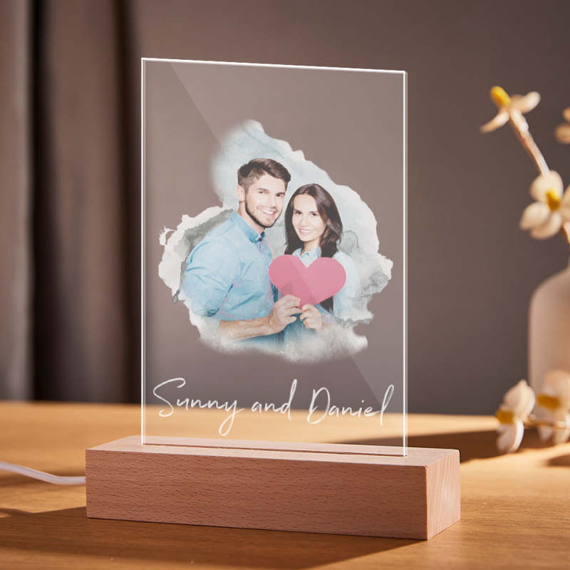 Personalisierte Aquarell-fotolampe, Individuelles Foto-nachtlicht, Weihnachtsgeschenk Für Liebhaber