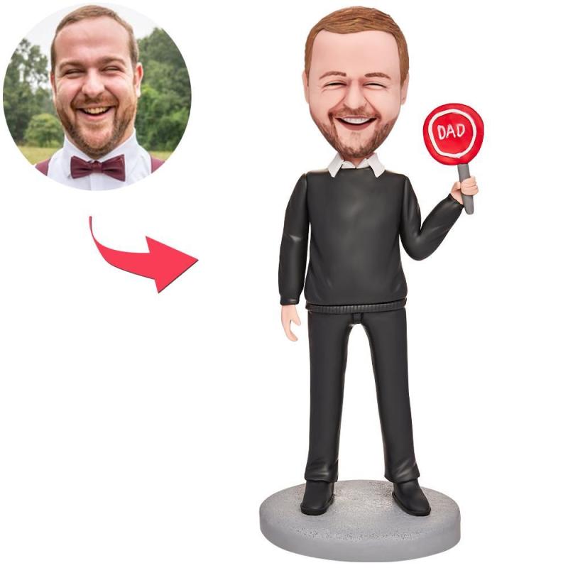Father's Day Gift Dad in Black T-shirt Custom Bobblehead with Engraved Text