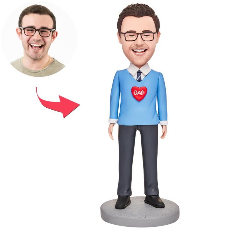 Father's Day Gift Dad in Blue Custom Bobblehead with Engraved Text