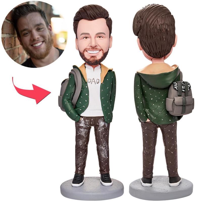 Father's Day Gift Dad with Backpack Custom Bobblehead with Engraved Text