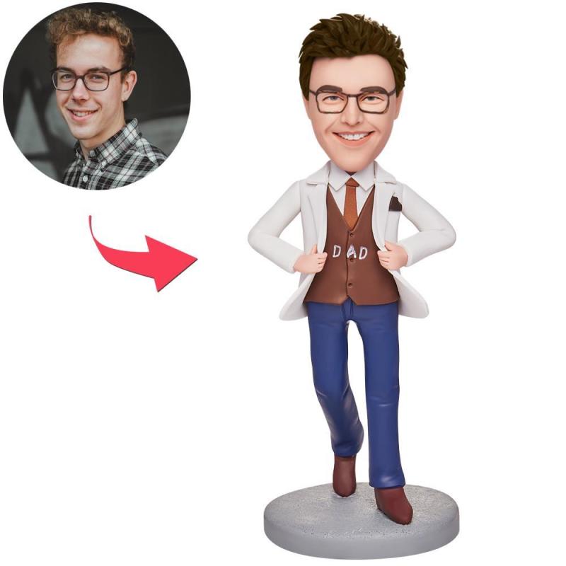 Father's Day Gift Stylish Dad Custom Bobblehead with Engraved Text