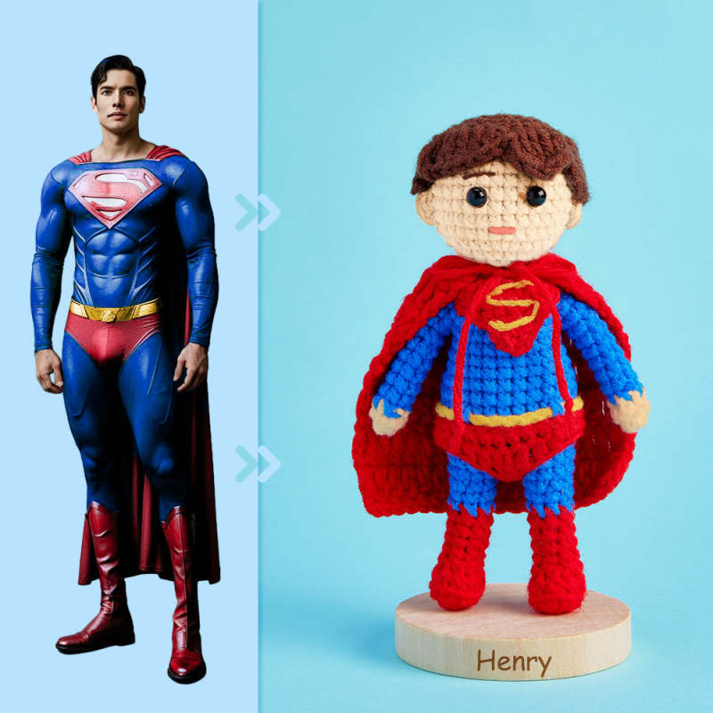 Ganzkörper Anpassbare 1-personen-häkelpuppe, Personalisierte Geschenke, Handgewebte Minipuppen – Superman