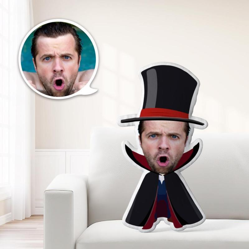 Halloween Geschenke Personalisiertes Gesichtskissen Gentleman Vampire Halloween Minime Kissen Benutzerdefinierte Fotokissen Personalisierte Kissen Benutzerdefinierte Kissen Puppe