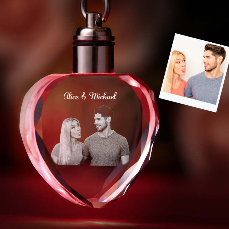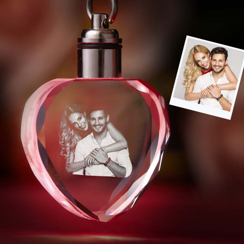 Kundenspezifisches Foto-Kristall Schlüsselbund Paar-Andenken-Kristall Keychain Herz-Form-Foto Schlüsselbund