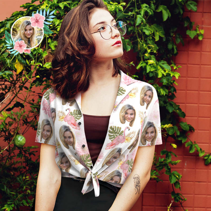 Kundenspezifisches Gesichts-Hawaiianer-Hemd-Rosa-Flamingo-Foto-Hawaiianer-Hemd für Frauen