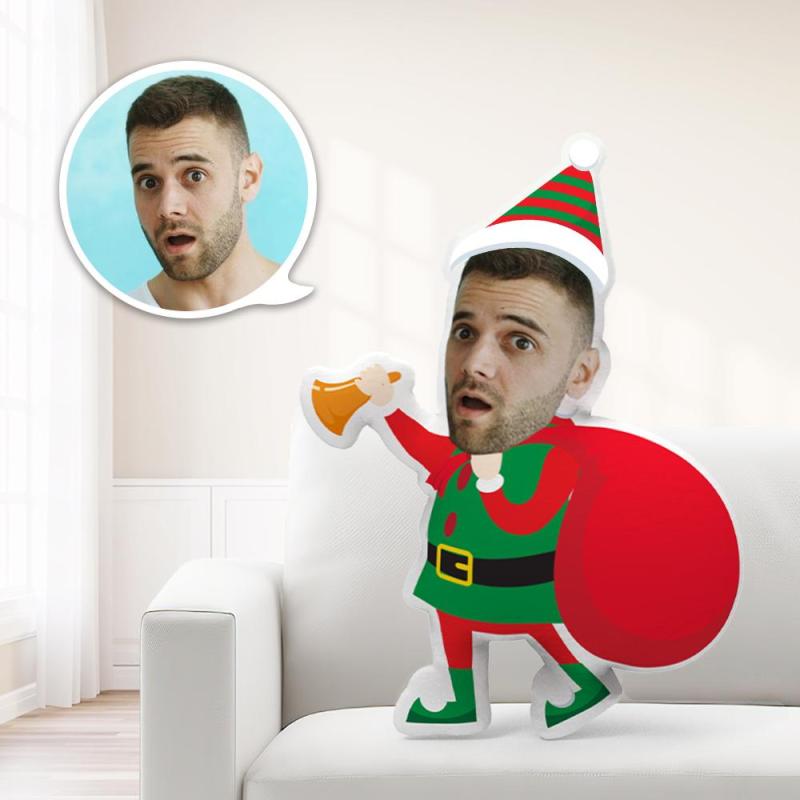 Mini Me Kissen Weihnachtsgeschenk Kissen Weihnachten mit Gesicht Weihnachtself mit einem roten Geschenktüte