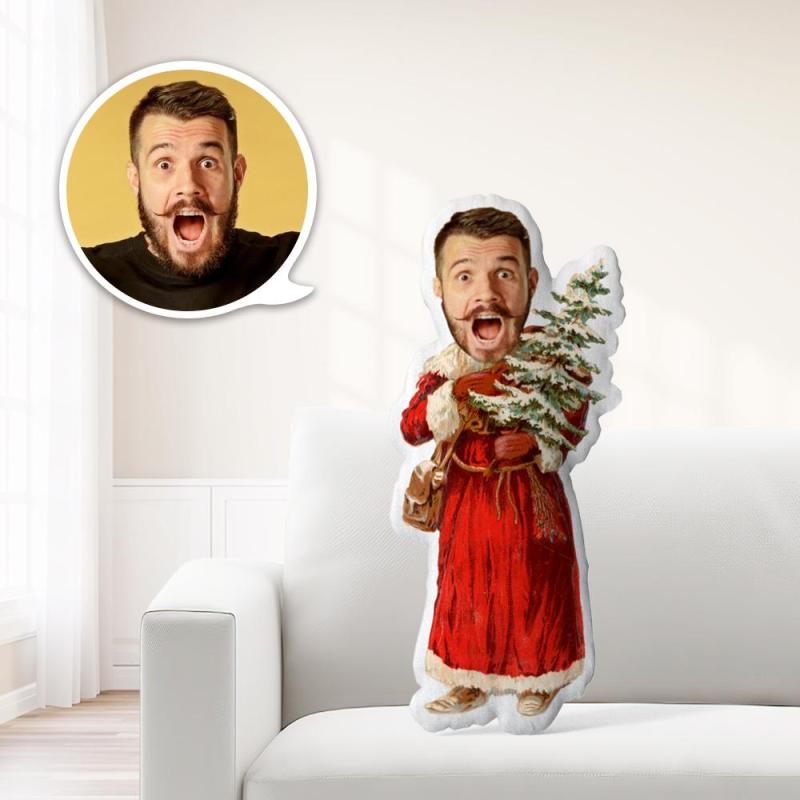 Minime Fotokissen Weihnachtsgeschenk Kissen Puppe mit Gesicht rot Santa mit Baum