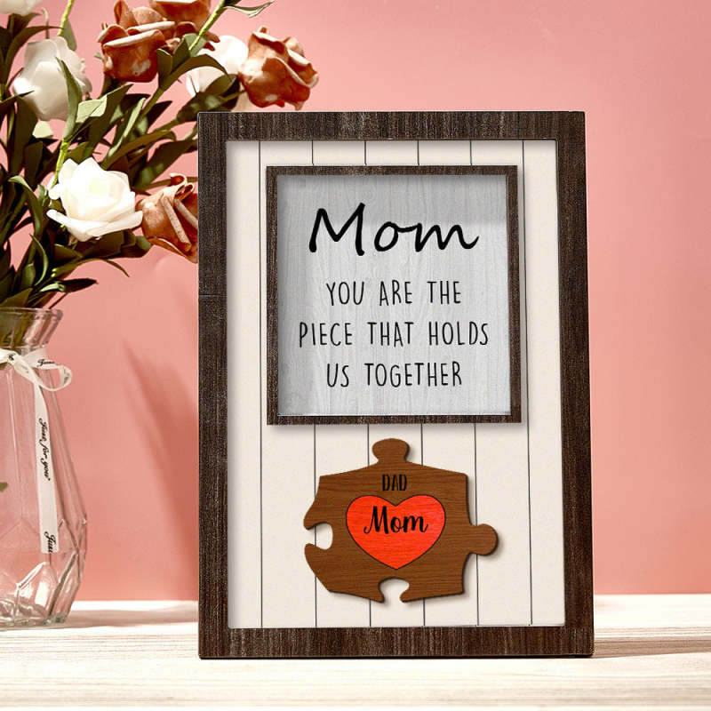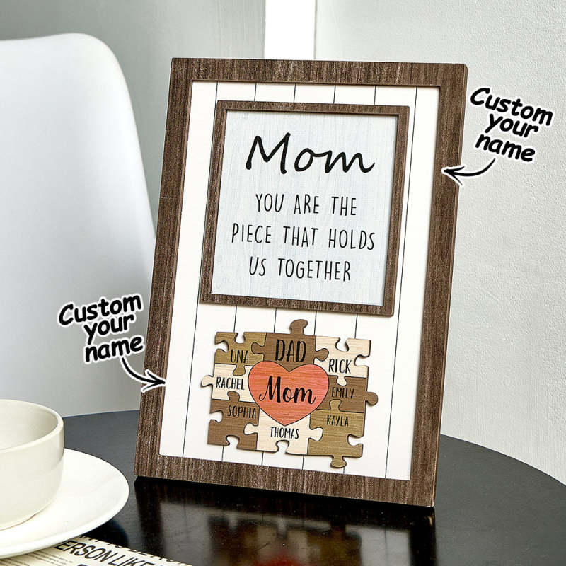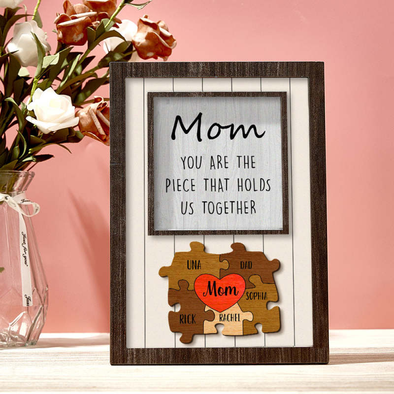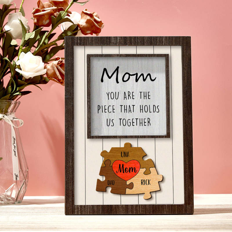 Personalisiertes Mutter-puzzle-schild „du Bist Das Stück, Das Uns Zusammenhält“. Personalisiertes Familienmitglied-puzzle-schild, Muttertagsgeschenk