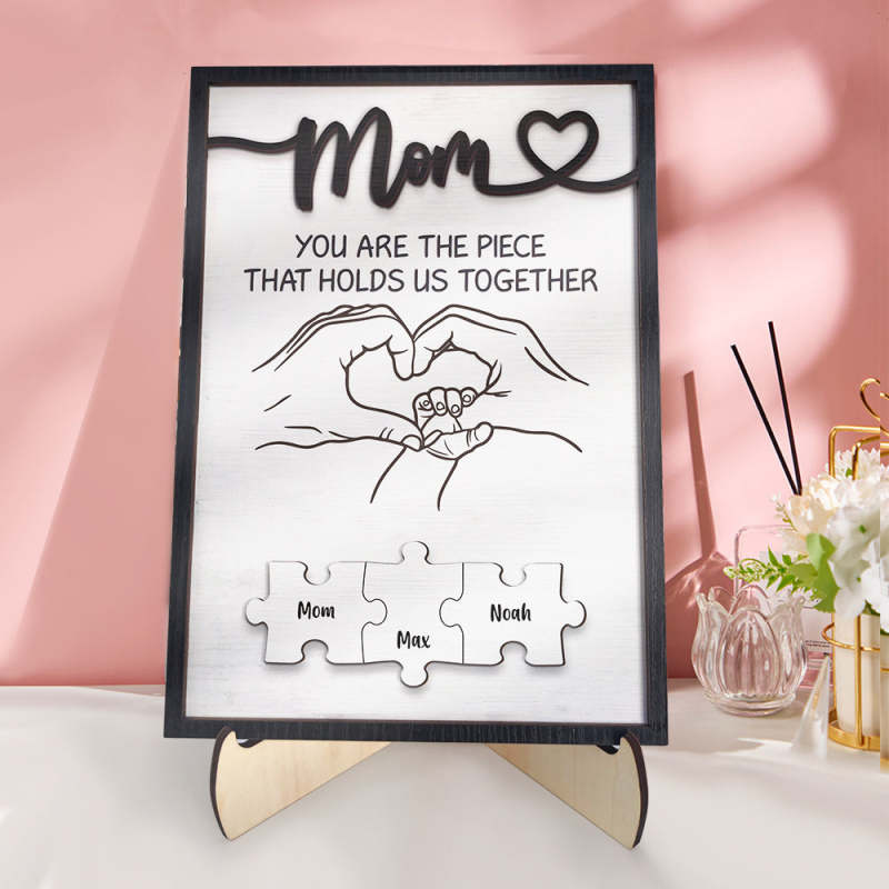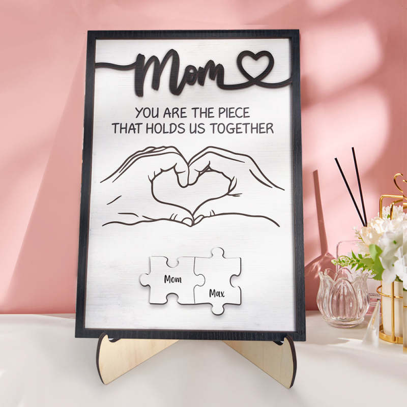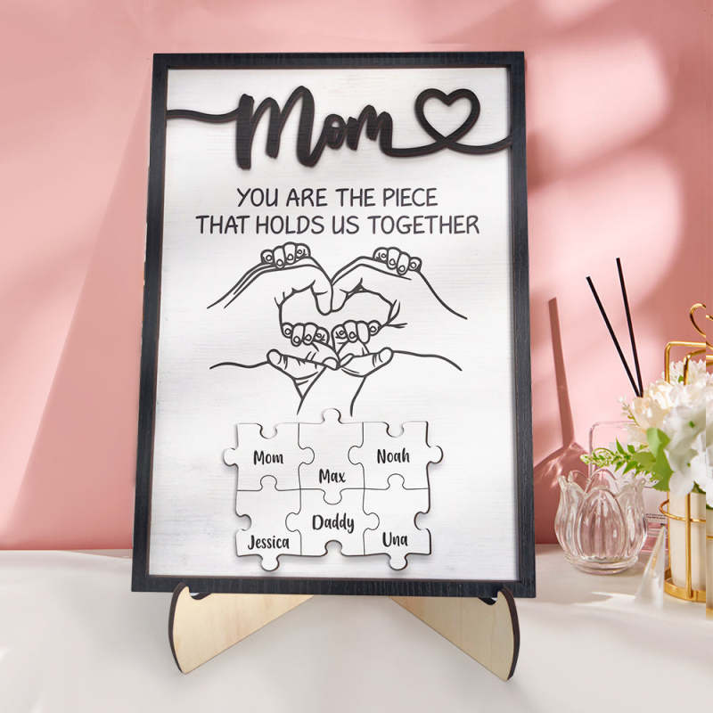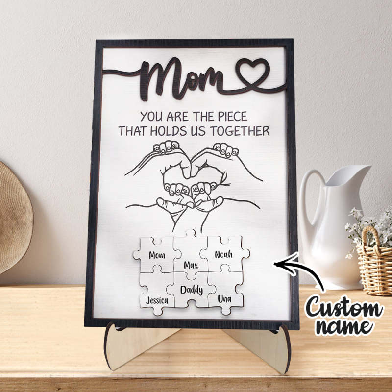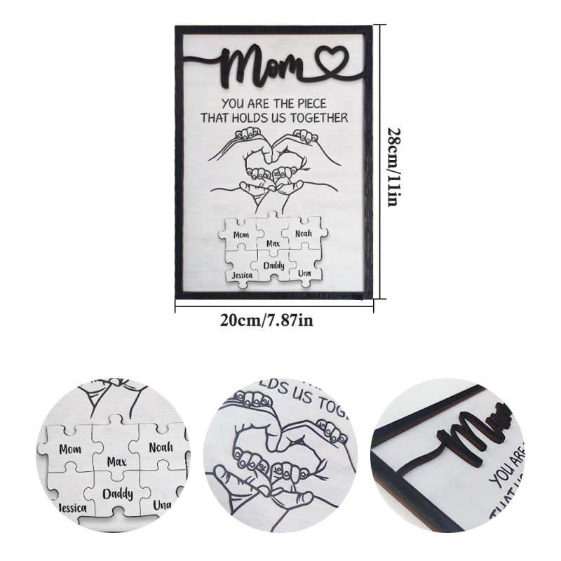 Personalisiertes Mutter-puzzle-schild „du Bist Das Stück, Das Uns Zusammenhält“. Personalisiertes Familienmitglied-puzzle-schild, Muttertagsgeschenke