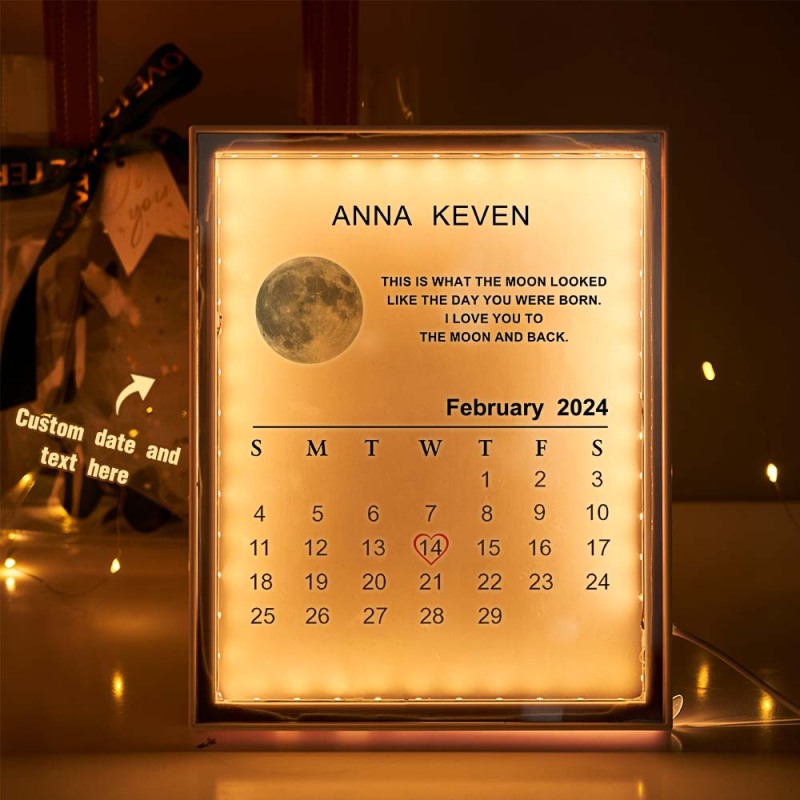 Benutzerdefinierte Mondphasenlampe Kalender Nachtlicht Personalisierter Name Spiegellampe Geschenk Für Liebhaber