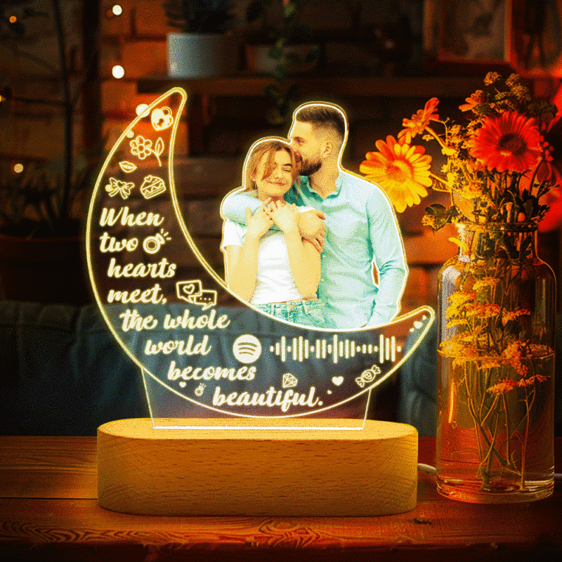 Personalisierte Foto-acryl-mondlampe, Individuelles Nachtlicht, Geschenk Für Paare, Heimdekoration