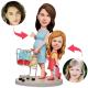 Pregnant Mom Taking Daughter Shopping Custom Bobblehead With Engraved Text